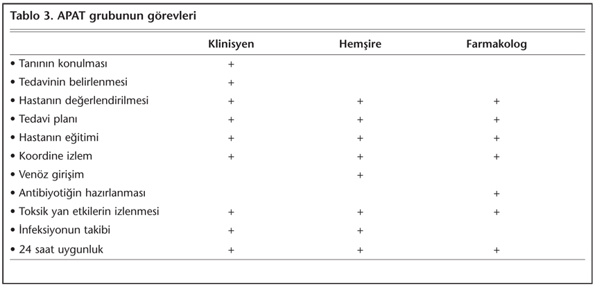Tablo 3’te APAT grubunun görevleri görülmektedir[10].