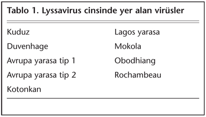 Kuduz virüsü Rhabdoviridae familyasının bir üyesidir. Bu familyada yer alan 100'ün üzerindeki virüs; bitki, artropot, sürüngen ve memelileri infekte eder. Rhabdoviridae familyasında beş cins yer alır. Bunlardan üçü hayvanları, ikisi ise bitkileri infekte eder. Hayvanları infekte edenler; Vesiculoviruslar, Lyssaviruslar ve Ephemeroviruslar, bitkileri infekte edenler ise Cytorhabdoviruslar ile Nucleorhabdovirus'lardır[3].