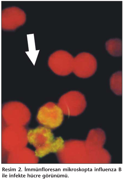 Sonuç olarak; halsizlik, ateş, terleme, baş ve kas ağrısı, öksürük, göz yaşarması, ses ve tat değişikliği şikayetleriyle gelen hastalarda viral etyoloji düşünülmelidir. İmmünfloresan yöntemle hastalarda etyolojik ajanın tespit edilmesi veya iyi bir klinik gözlem, bakteriyel infeksiyonlara yönelik uygunsuz antibiyoterapiyi önleyebildiği gibi, biz hekimlere de daha rahat davranabilme yetisi kazandırmaktadır.